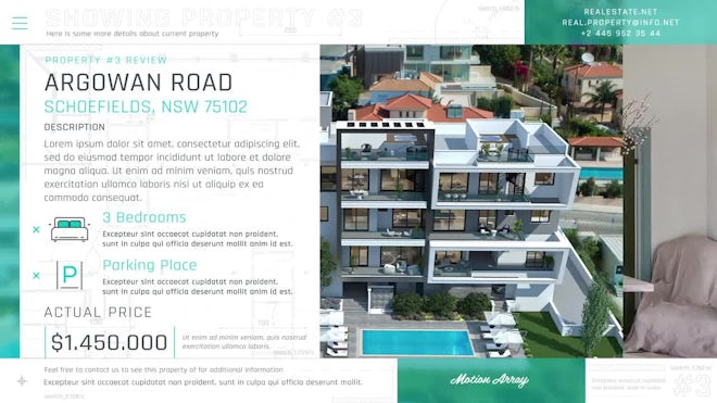 An After Effects template featuring a bright slideshow with real estate elements and themes. The project contains 80 text placeholders, 14 media placeholders, 1 audio placeholder and 1 logo placeholder. You can adjust the colors to match your company brand with the included color controller. Close your next deal with the help of this AE template today. Available in HD.