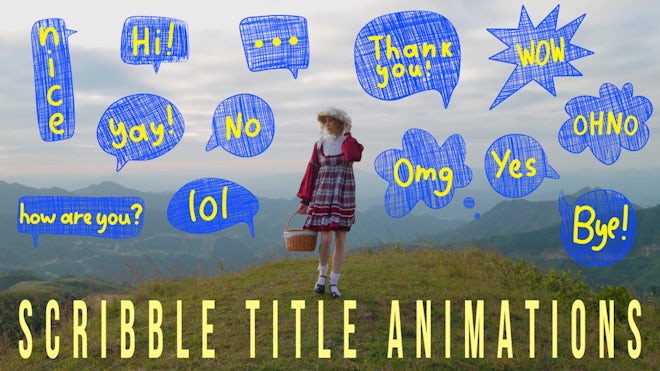 This stock motion graphics video pack includes 13 different clips of hand-drawn scribble titles on a transparent alpha channel.