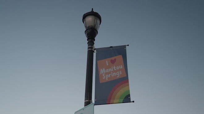 Colorful Pride Banner On Lamppost In Manitou Springs